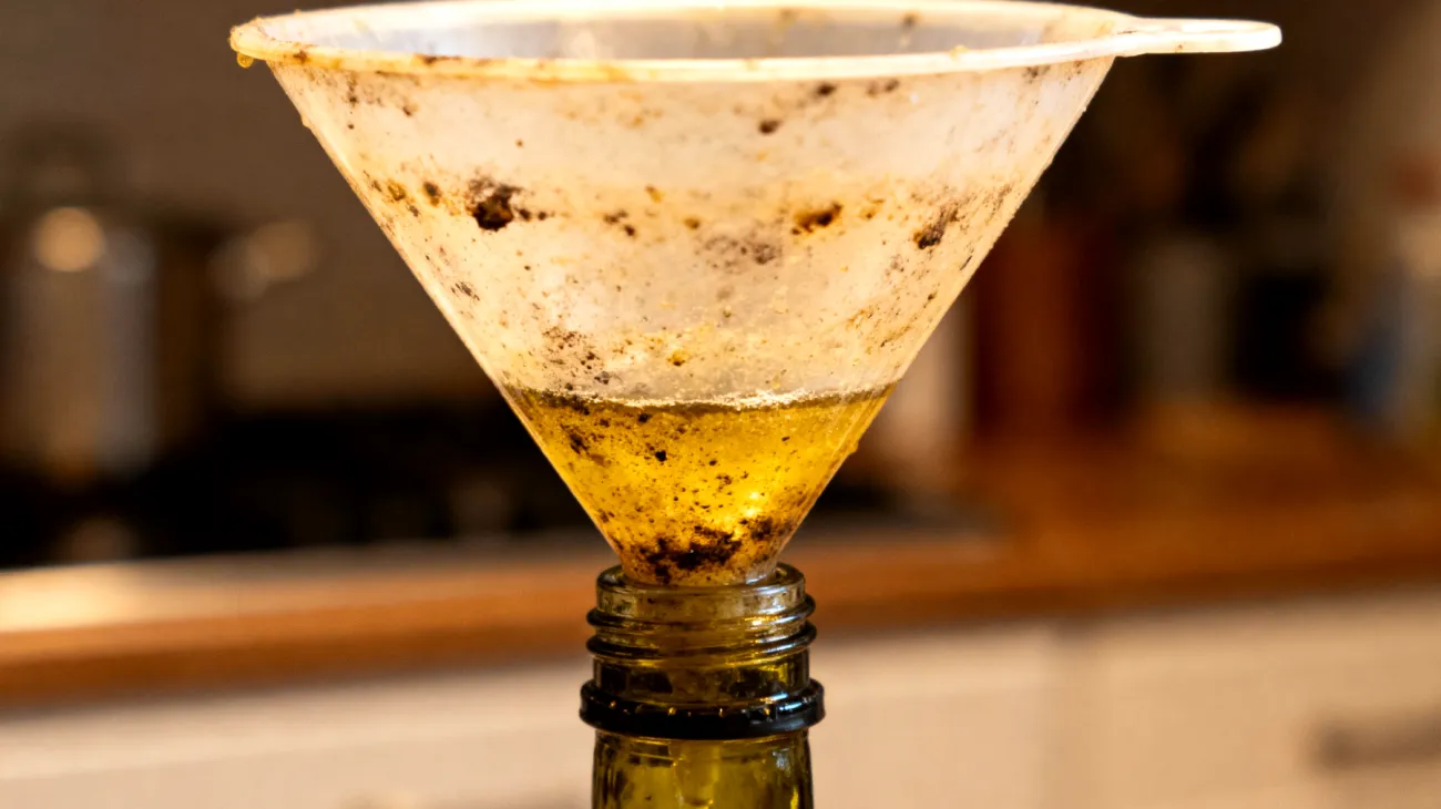 Come pulisci l'imbuto dopo aver travasato l'olio?